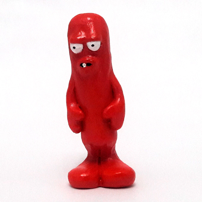 Peça em resina confeccionada pela Bonecos Estranhos com medida aproximada de 3 x 3 x 8 cm (comprimento x largura x altura).